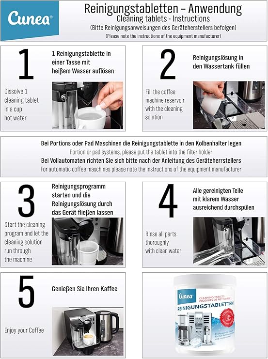 This product consists of a packet of eight tablets intended for use in cleaning espresso coffee machines. Cleaning pills with a unique formula, can effectively clean the residual boilers and filters in the coffee grease and impurities, from inside to outside your. And of course, you can purchase them from all specialist shops. Select the department you want to search in. When the different parts of your machine are clean, the coffee flavor also comes out fully.